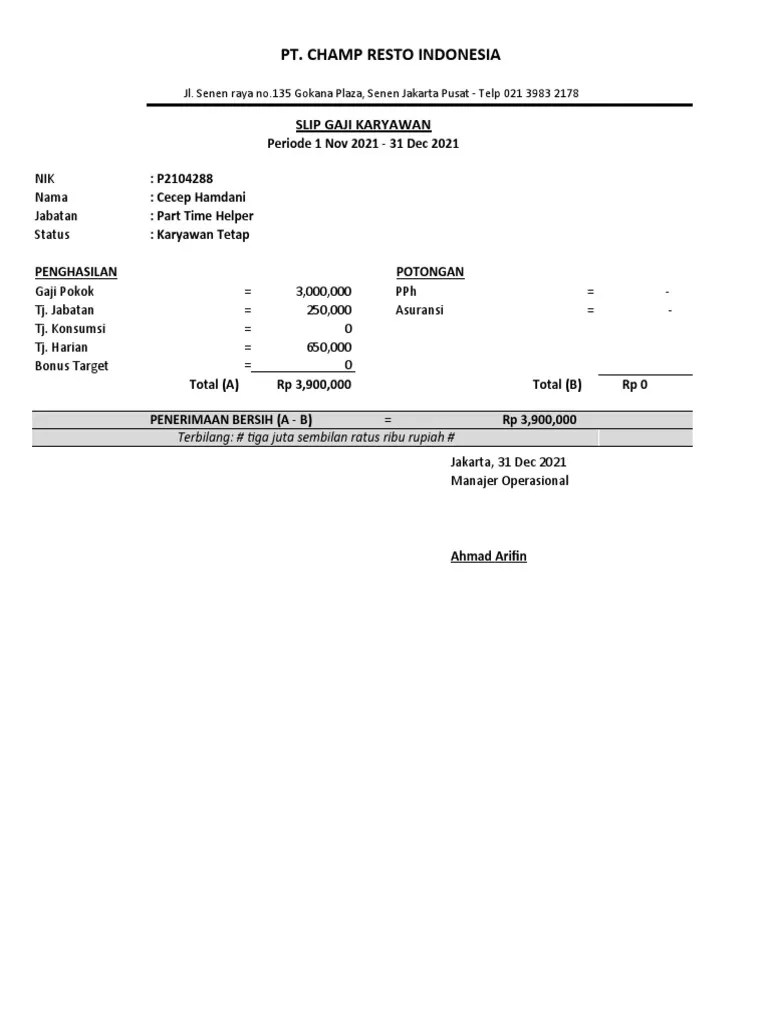 Contoh Slip Gaji Restoran / 5 Contoh Slip Gaji Karyawan Beserta Rinciannya Lengkap